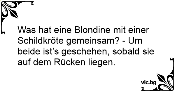 Was hat eine Blondine mit einer Schildkröte gemeinsam? - Um beide ist’s geschehen, sobald sie auf dem Rücken liegen.