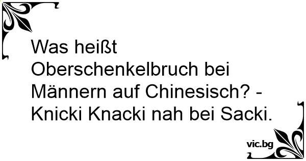 Was heißt Oberschenkelbruch bei Männern auf Chinesisch? - Knicki Knacki nah bei Sacki.