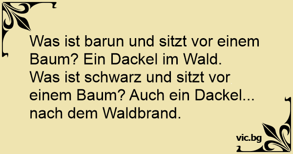 Was ist barun und sitzt vor einem Baum? Ein Dackel im Wald.