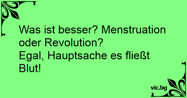 Jde chlap po Václaváku, mává rudou vlajkou a řve: "Ať žije menstruace." Chvíli ho pozoruje nějaký pán a pak mu řekne: "Co blázníte. Snad ať žije revoluce, ne?" Chlap nato: "Mně to je jedno, hlavně...