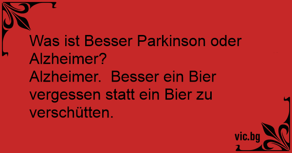 Was ist schlimmer: Alzheimer oder Parkinson? - Ganz klar: Parkinson. Es ist besser ein Bier zu vergessen, als eines zu verschütten!