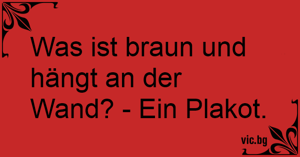 Was ist braun und hängt an der Wand? - Ein Plakot.