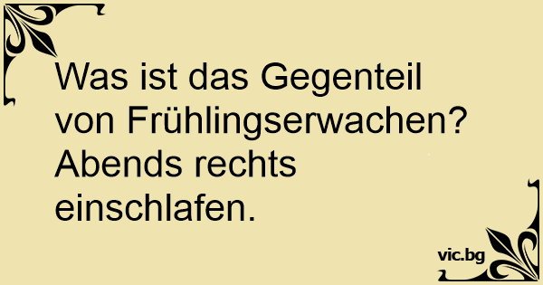 Was ist das Gegenteil von Frühlingserwachen? Abends rechts einschlafen.