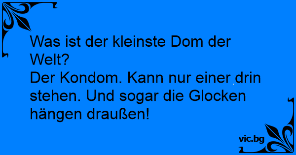 Apropos Dom: der grösste ist ja bekanntlich der Kölner Dom, aber welches ist der kleinste? Kondom. Da geht nur einer rein, und der muss auch noch stehen.