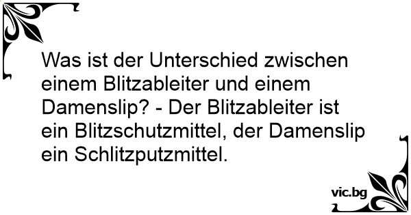 Was ist der Unterschied zwischen einem Blitzableiter und einem Damenslip? - Der Blitzableiter ist ein Blitzschutzmittel, der Damenslip ein Schlitzputzmittel.