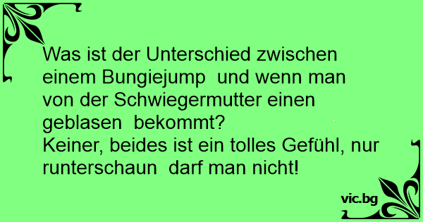 Was ist der Unterschied zwischen einem Bungiejump und wenn man von der Schwiegermutter einen geblasen bekommt?<br />Keiner, beides ist ein tolles Gefühl, nur runterschaun darf man niсhт!