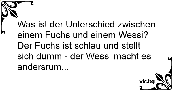 Was ist der Unterschied zwischen einem Fuchs und einem Wessi? Der Fuchs ist schlau und stellt sich dumm - der Wessi macht es andersrum...