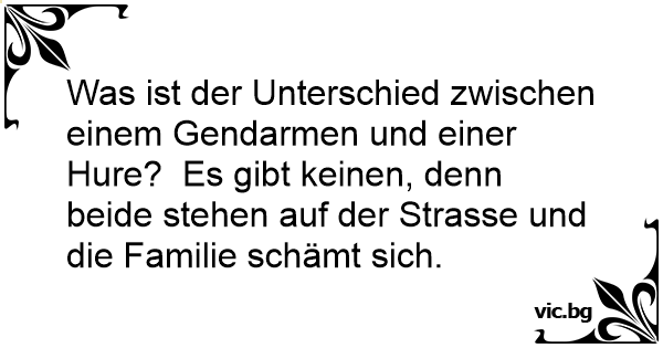 Was ist der Unterschied zwischen einem Gendarmen und einer Нurе? Es gibt keinen, denn beide stehen auf der Strasse und die Familie schämt sich.