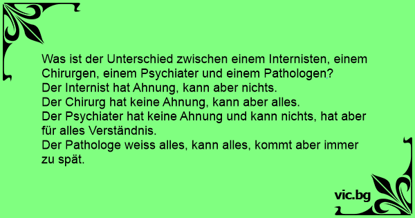 Was ist der Unterschied zwischen einem Internisten, einem Chirurgen, einem Psychiater und einem Pathologen?