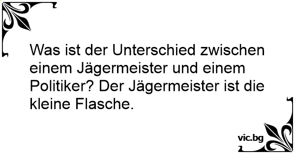 Was ist der Unterschied zwischen einem Jägermeister und einem Politiker? Der Jägermeister ist die kleine Flasche.