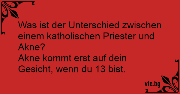 Vad är det för skillnad mellan en katolsk präst och acne? Acne kommer inte i ansiktet på dig före att du är över 12 år gammal