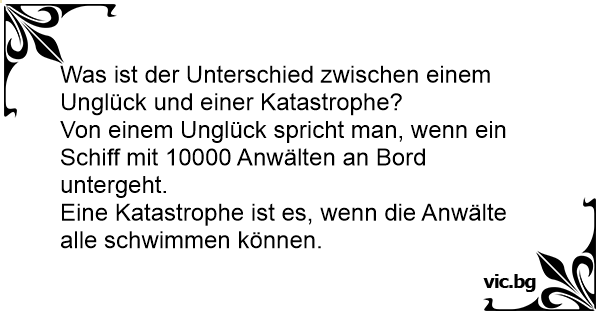 Von einem Unglück spricht man, wenn ein Schiff mit 10000 Anwälten an Bord untergeht.
