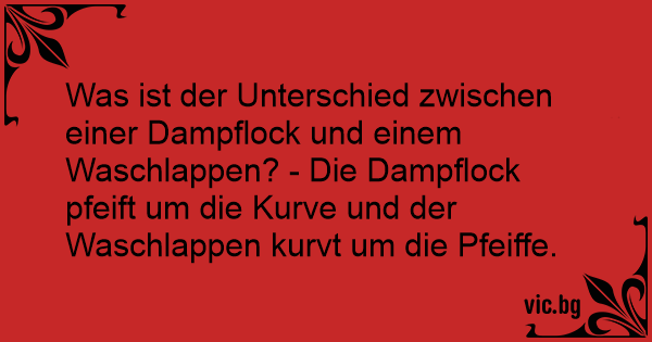 Was ist der Unterschied zwischen einer Dampflock und einem Waschlappen? - Die Dampflock pfeift um die Kurve und der Waschlappen kurvt um die Pfeiffe.