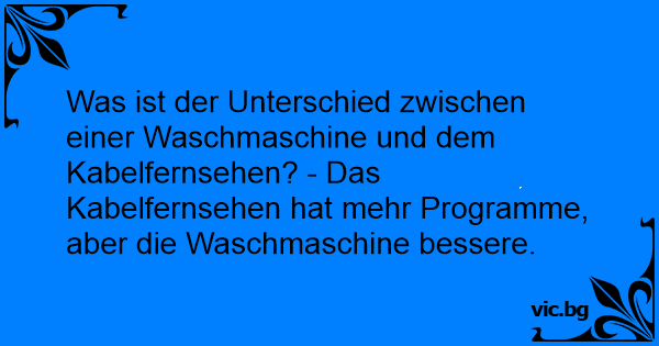 Was ist der Unterschied zwischen einer Waschmaschine und dem Kabelfernsehen? - Das Kabelfernsehen hat mehr Programme, aber die Waschmaschine bessere.