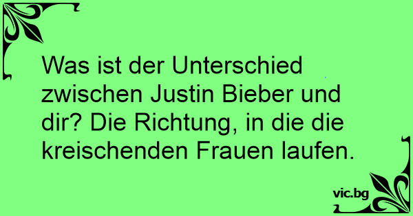 Was ist der Unterschied zwischen Justin Bieber und dir? Die Richtung, in die die kreischenden Frauen laufen.