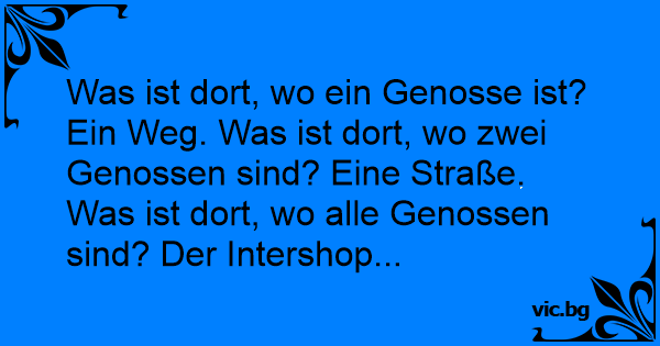 Was ist dort, wo ein Genosse ist? Ein Weg. Was ist dort, wo zwei Genossen sind? Eine Straße.
