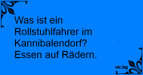 Wie bezeichnen Kannibalen einen Rollstuhlfahrer? Essen auf Rädern.