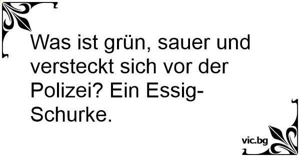 Was ist grün, sauer und versteckt sich vor der Polizei? Ein Essig-Schurke.