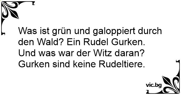 Was ist grün und galoppiert durch den Wald? Ein Rudel Gurken. Und was war der Witz daran? Gurken sind keine Rudeltiere.