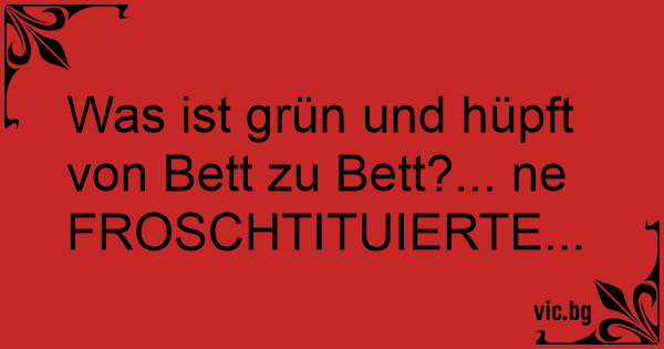 Was ist grün und hüpft von Bett zu Bett?... ne FROSCHTITUIERTE...