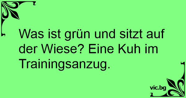 Was ist grün und sitzt auf der Wiese? Eine Kuh im Trainingsanzug.