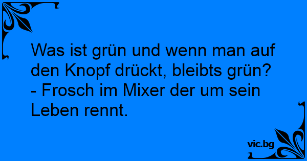 Was ist grün und wird auf Knopfdruck rot? – Ein Frosch im Mixer.