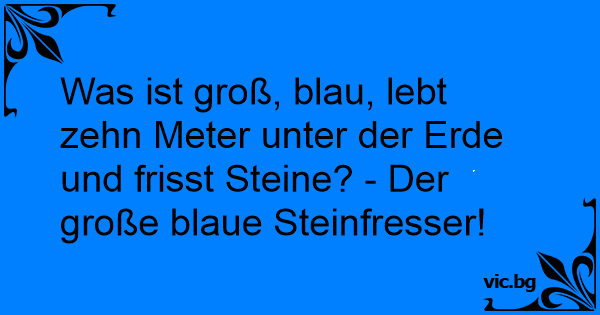 Was ist groß, blau, lebt zehn Meter unter der Erde und frisst Steine? - Der große blaue Steinfresser!