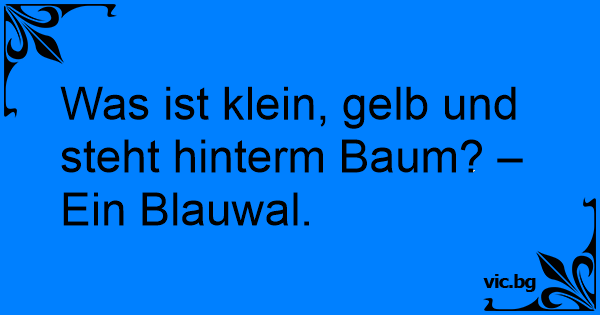 Was ist klein, gelb und steht hinterm Baum? – Ein Blauwal.
