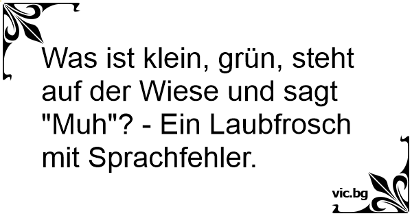 Was ist klein, grün, steht auf der Wiese und sagt "Muh"? - Ein Laubfrosch mit Sprachfehler.
