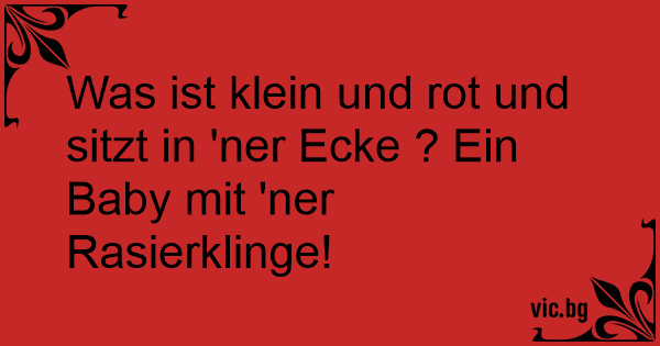 Was ist klein und rot und sitzt in 'ner Ecke ? Ein Baby mit 'ner Rasierklinge!