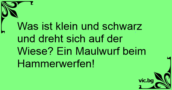 Was ist klein und schwarz und dreht sich auf der Wiese? Ein Maulwurf beim Hammerwerfen!