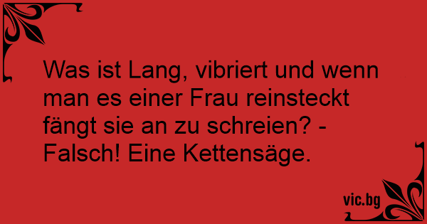 Was ist Lang, vibriert und wenn man es einer Frau reinsteckt fängt sie an zu schreien? - Falsch! Eine Kettensäge.