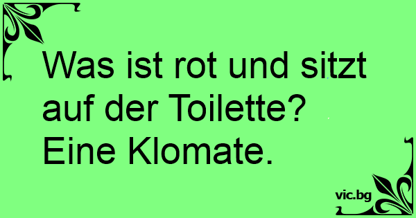 Was ist rot und sitzt auf der Toilette? Eine Klomate.