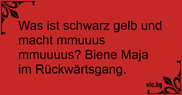 Was ist schwarz gelb und macht mmuuus mmuuuus? Biene Maja im Rückwärtsgang.