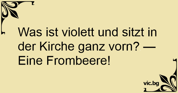 Was ist violett und sitzt in der Kirche ganz vorn? — Eine Frombeere!