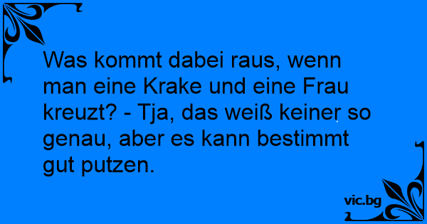 Was kommt dabei raus, wenn man eine Krake und eine Frau kreuzt? - Tja, das weiß keiner so genau, aber es kann bestimmt gut putzen.