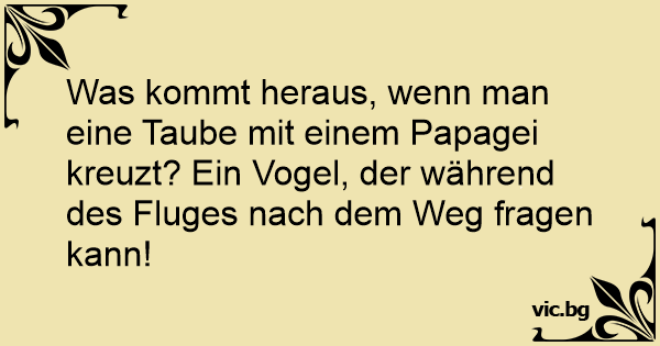 Was kommt heraus, wenn man eine Taube mit einem Papagei kreuzt? Ein Vogel, der während des Fluges nach dem Weg fragen kann!