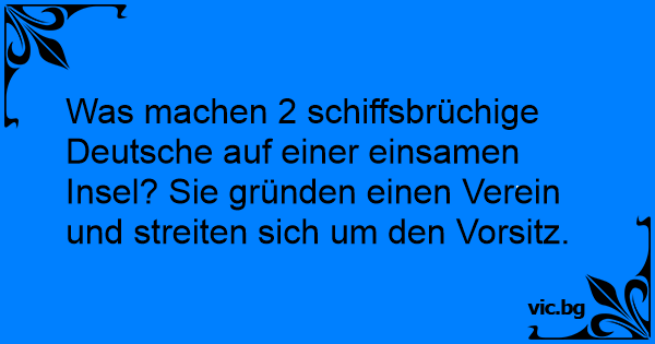 Was machen 2 schiffsbrüchige Deutsche auf einer einsamen Insel? Sie gründen einen Verein und streiten sich um den Vorsitz.