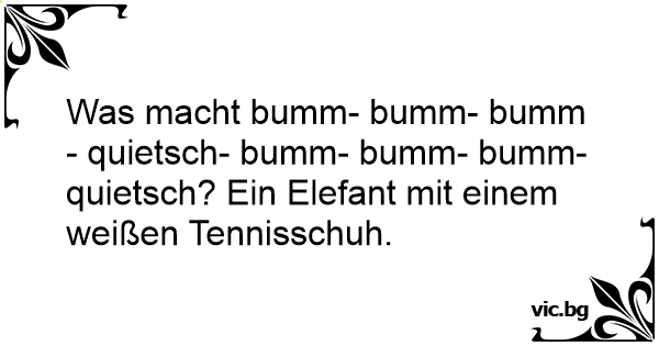 Was macht bumm- bumm- bumm- quietsch- bumm- bumm- bumm- quietsch? Ein Elefant mit einem weißen Tennisschuh.