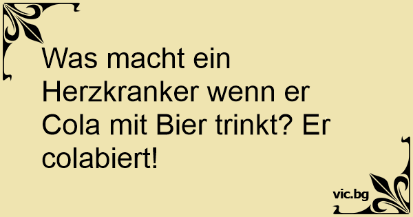 Was macht ein Herzkranker wenn er Cola mit Bier trinkt? Er colabiert!