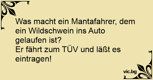 Was macht ein Mantafahrer, dem ein Wildschwein ins Auto gelaufen ist?