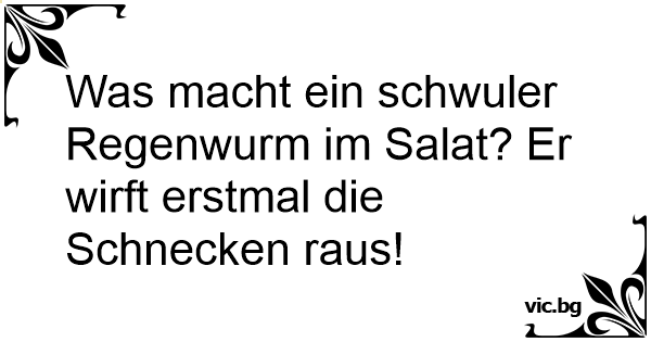 Was macht ein schwuler Regenwurm im Salat? Er wirft erstmal die Schnecken raus!