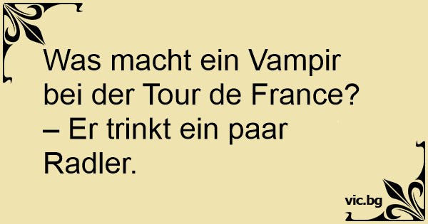 Was macht ein Vampir bei der Tour de France? – Er trinkt ein paar Radler.