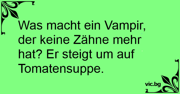 Was macht ein Vampir, der keine Zähne mehr hat? Er steigt um auf Tomatensuppe.