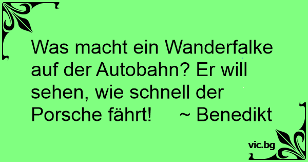 Was macht ein Wanderfalke auf der Autobahn? Er will sehen, wie schnell der Porsche fährt! ~ Benedikt