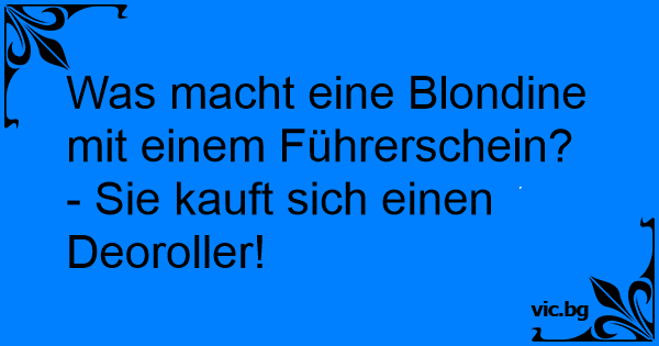 Was macht eine Blondine mit einem Führerschein? - Sie kauft sich einen Deoroller!