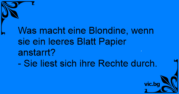 Was macht eine Blondine, wenn sie ein leeres Blatt Papier anstarrt? - Sie liest sich ihre Rechte durch.