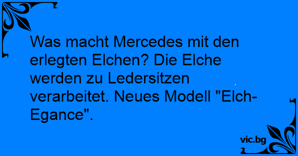 Was macht Mercedes mit den erlegten Elchen? Die Elche werden zu Ledersitzen verarbeitet. Neues Modell "Elch-Egance".