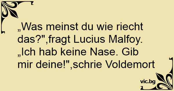 „Was meinst du wie riecht das?",fragt Lucius Malfoy. „Ich hab keine Nase. Gib mir deine!",schrie Voldemort