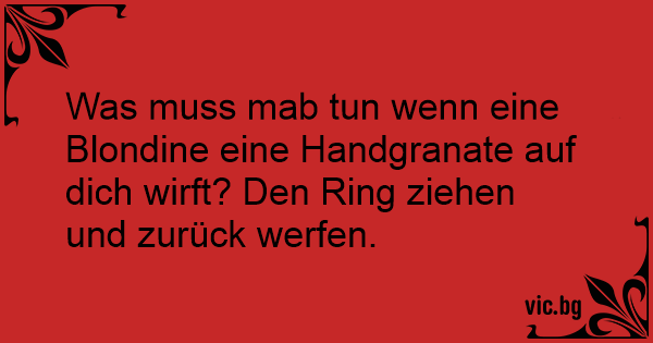 Was muss mab tun wenn eine Blondine eine Handgranate auf dich wirft? Den Ring ziehen und zurück werfen.